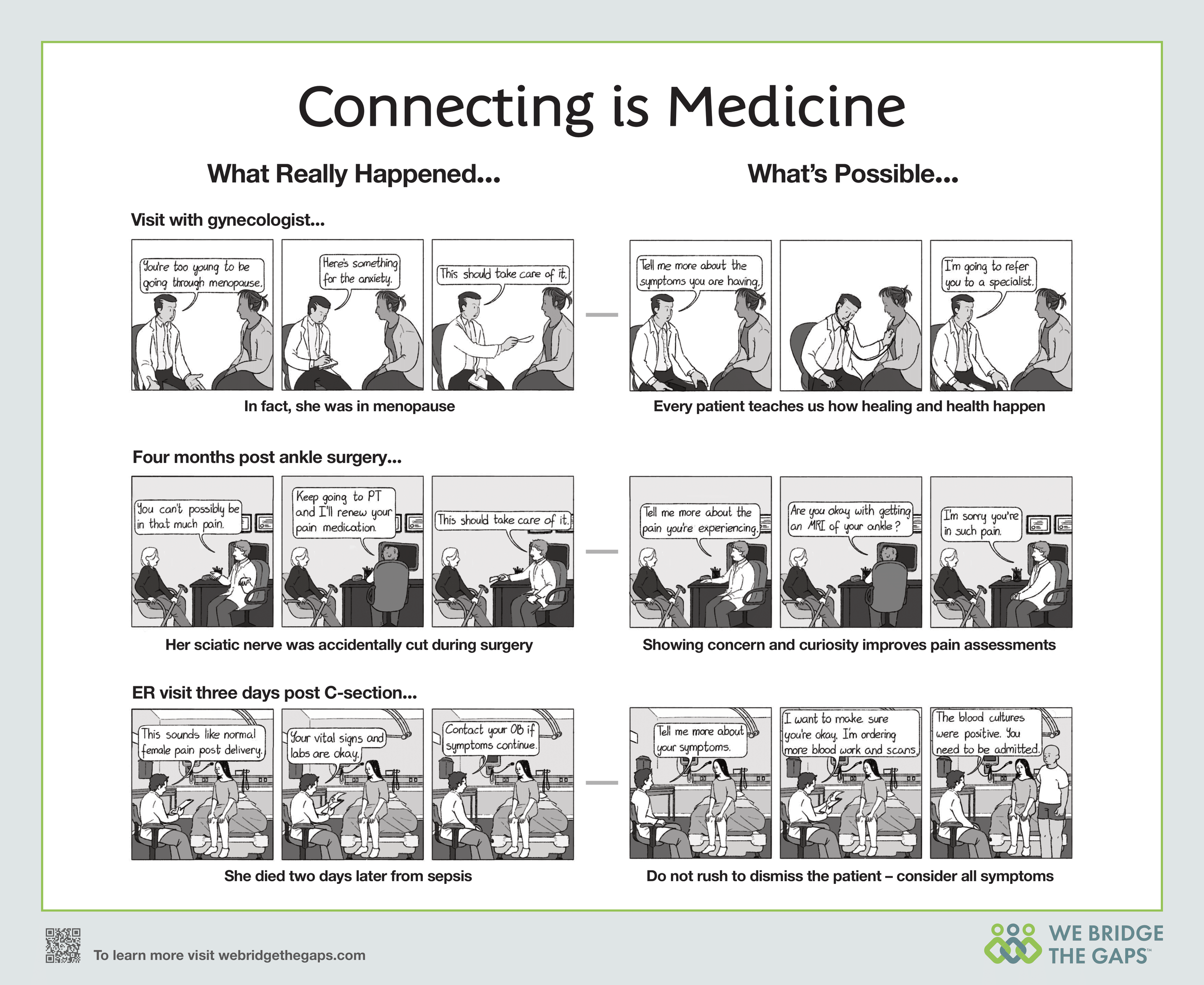 WE Bridge The Gaps is a leading source for creative education, healthcare advocacy and patient empowerment. WE is capitalized throughout our website and teaching materials to remind us of the perspective WE need to Bridge The Gaps in Healthcare.